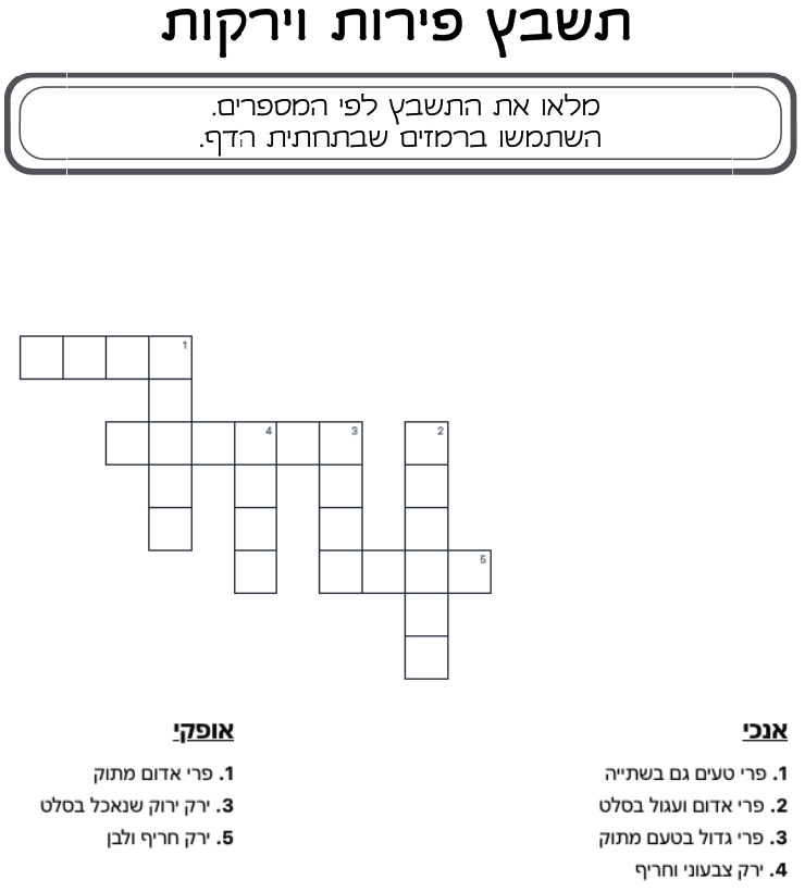 לדוגמה: “תשבץ מאכלים ליום העצמאות”