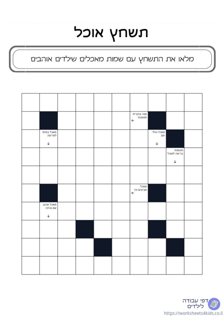 ✔️ תשחץ להדפסה חינם