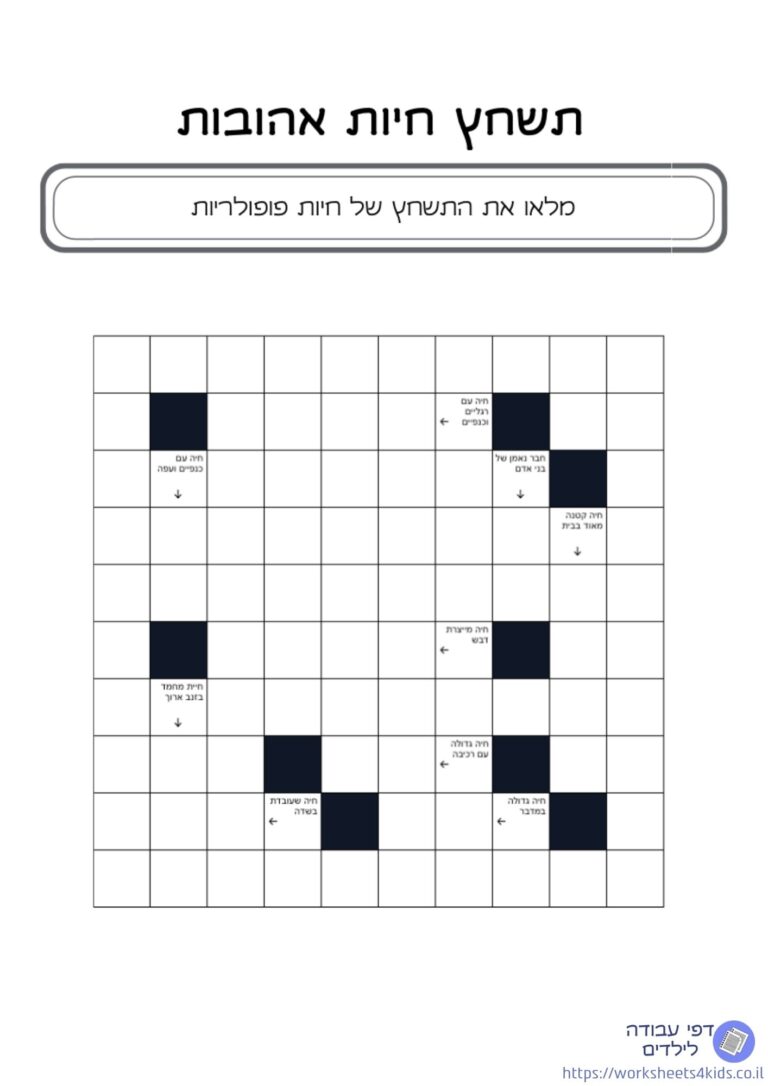 דף הבית » משחקים להדפסה » תשחצים » תשחץ חיות אהובות להדפסה